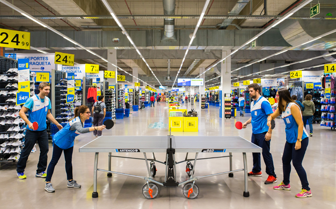 Decathlon abrió sus puertas en julio de 1976. Los primeros trabajadores fueron reclutados en gimnasios de la ciudad. Una de las premisas de Leclerc es que deseaba que sus empleados supieran de deportes.
